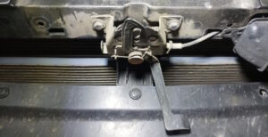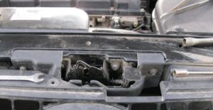 - Найдите тягу замка капота — она идёт от замка к передней части.