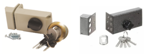 - ригельные — имеют несколько ригелей (стержней), выдвигающихся в разные стороны. Обеспечивают равномерное запирание.