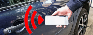 - Вы подносите свой смартфон к дверце машины и нажимаете кнопку на брелоке у собеседника.